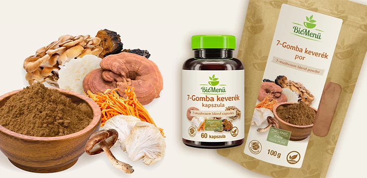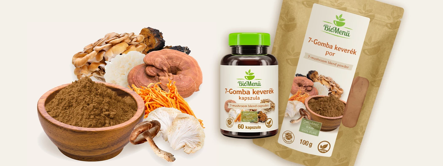 Amestec de 7 ciuperci - O combinație de șapte tipuri de ciuperci, bine cunoscute pentru beneficiile lor pentru sănătate