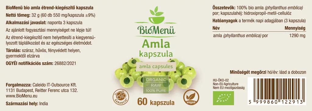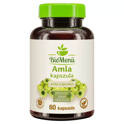 Pudra BioMenü BIO AMLA se adaugă în capsule după uscarea blândă și măcinarea întregului fruct la o temperatură scăzută. 100% natural, fără OMG și nu conține aditivi. O sursă extrem de bogată de vitamina C. Conține cantități mari de polifenoli, taninuri, aminoacizi, antioxidanți și minerale.