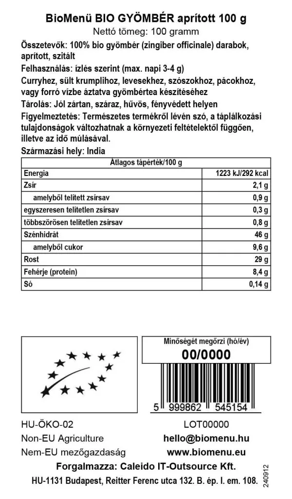 Bucăți de ghimbir 100% organic (zingiber officinale), tocate, cernute