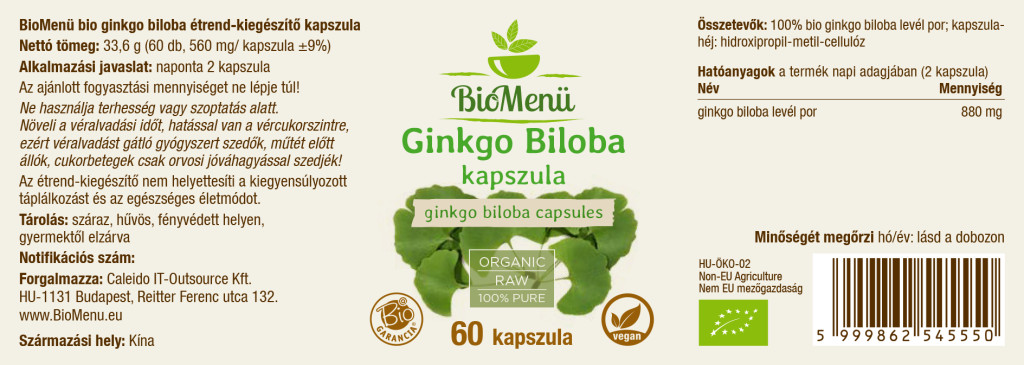 100% pudră organică de frunze de ginkgo biloba; învelișul capsulei: hidroxipropil metilceluloză