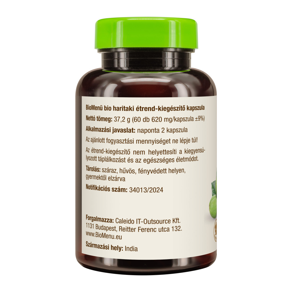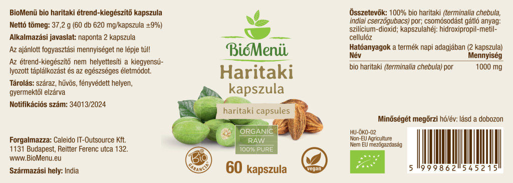 Haritaki 100% organic (terminalia chebula) pudră; agent antiaglomerant: dioxid de siliciu; învelișul capsulei: hidroxipropil metilceluloză