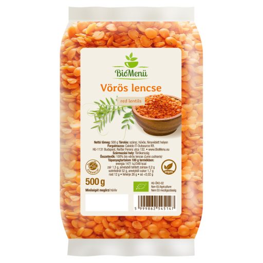 100% linte roșie organică (Lens culinaris); Alergeni: pot contine urme de gluten si seminte de susan