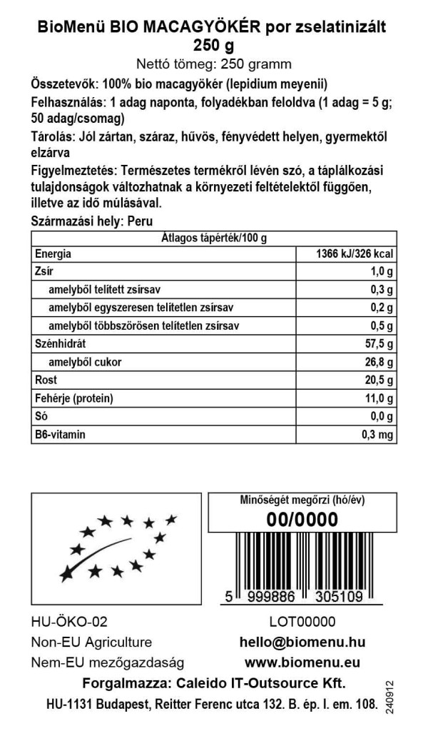 BioMenü bio Maca rădăcină pudră gelatinizată 250 g