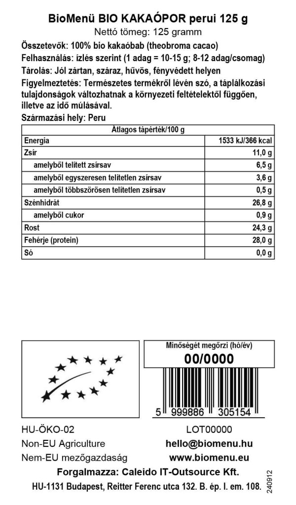 BioMenü bio pudră de Cacao Peru 125 g imagine produs
