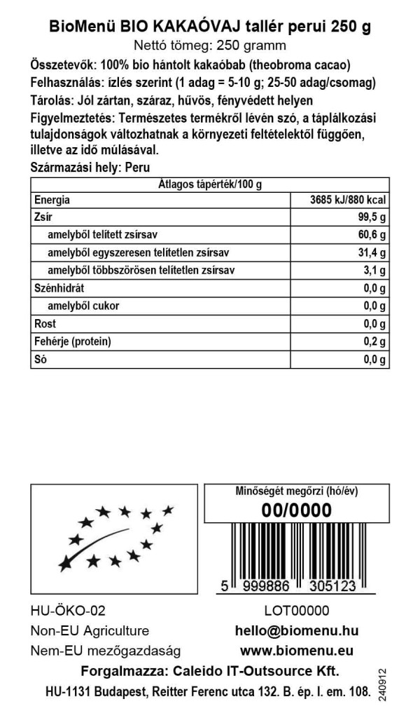 BioMenü bio taler de Unt de Cacao Peru 250 g imagine produs
