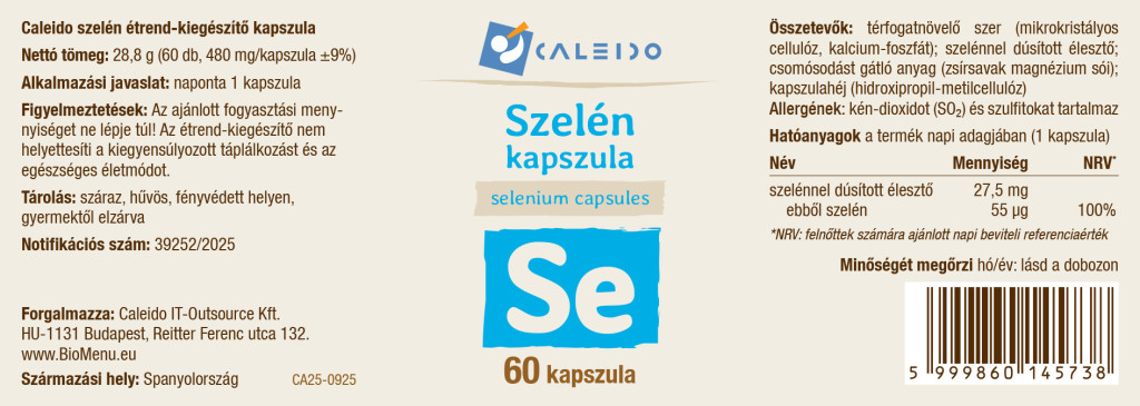 drojdie îmbogățită cu seleniu 27,5 mg, din care seleniu 55 μg (VNR 100%)