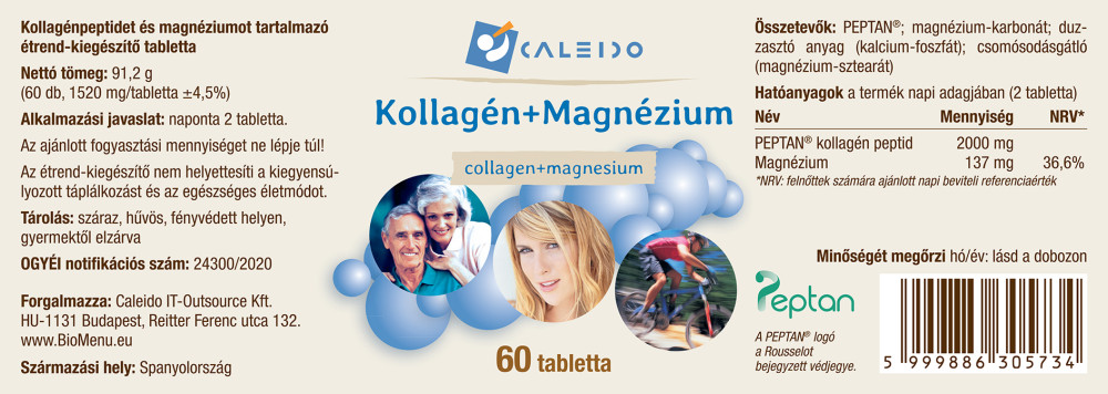 Pentru oamenii din timpul nostru, un aspect tineresc, atractiv și o bună calitate a vieții, adică menținerea articulațiilor, oaselor și mușchilor sănătoși, sunt esențiale. Colagenul este cea mai comună proteină din corpul uman, este cea mai importantă componentă a țesuturilor noastre conjunctive, ele asigură infrastructura sistemului musculo-scheletic și sunt principalele elemente structurale ale pielii. Beneficiile sale pentru sănătate sunt cunoscute de mult timp, de exemplu în Asia - în primul rând în Japonia - este folosit ca produse cosmetice pentru îngrijirea pielii de aproape o mie de ani. Astăzi, peptidele de colagen se bucură de încrederea consumatorilor din întreaga lume. Datorită ingredientelor din Caleido Colagen + Magneziu, este o peptidă unică de colagen de înaltă puritate, un ingredient activ bioactiv ideal, aplicabil pe scară largă. Procesul blând de producție enzimatică permite hidroliza precisă și greutatea moleculară optimă, ceea ce asigură performanțe excelente și ușurință în utilizare. Colagen + Magneziu a fost testat în mod special pentru a avea multiple beneficii pentru sănătate și proprietăți funcționale. Numeroase studii, inclusiv studii clinice in vitro, in vivo și dublu-orb controlate cu placebo, au demonstrat beneficiile Colagen + Magneziu în domenii cheie: