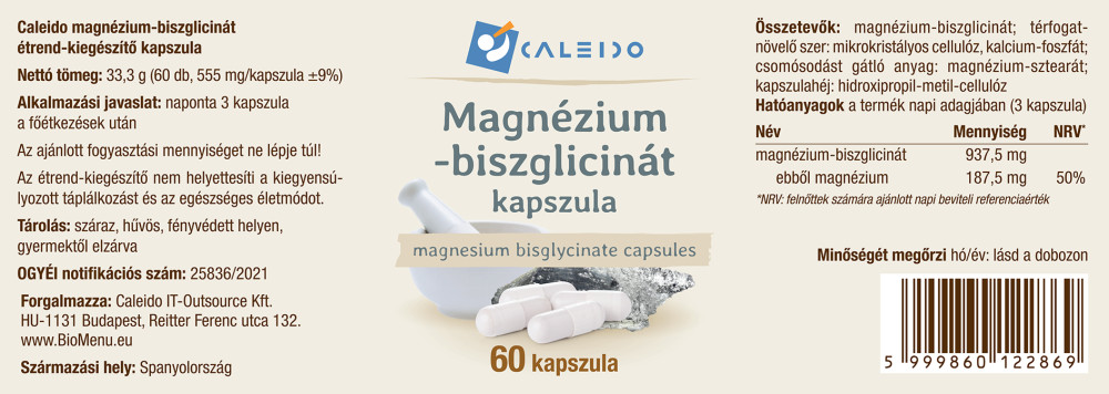 bisglicinat de magneziu; agent de încărcare: celuloză microcristalină, fosfat de calciu; agent antiaglomerant: stearat de magneziu; învelișul capsulei: hidroxipropil metilceluloză