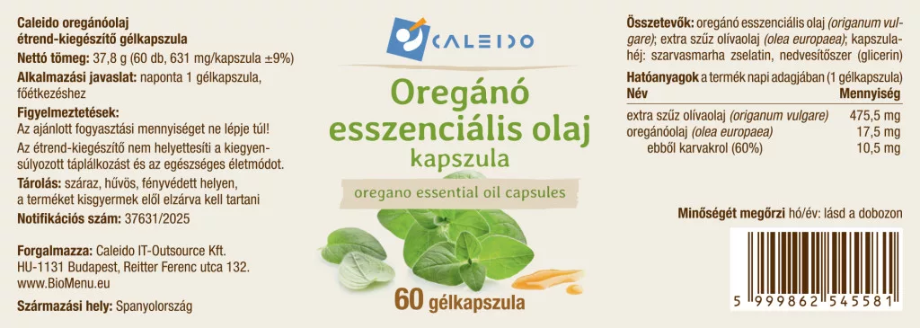 ulei esențial de oregano (origanum vulgare); ulei de măsline extravirgin (olea europaea); învelișul capsulei: gelatină bovină, umectant (glicerină)