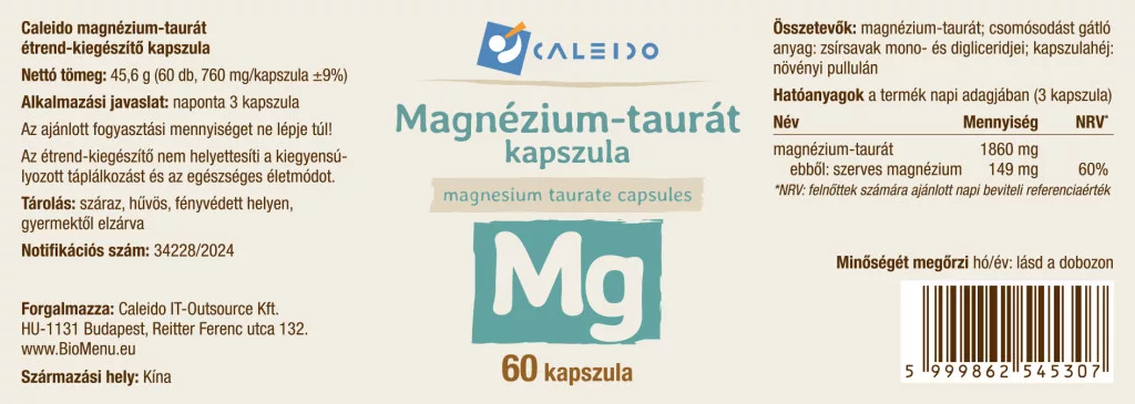 taurat de magneziu 1860 mg, din care magneziu organic 149 mg (VNR 60%)