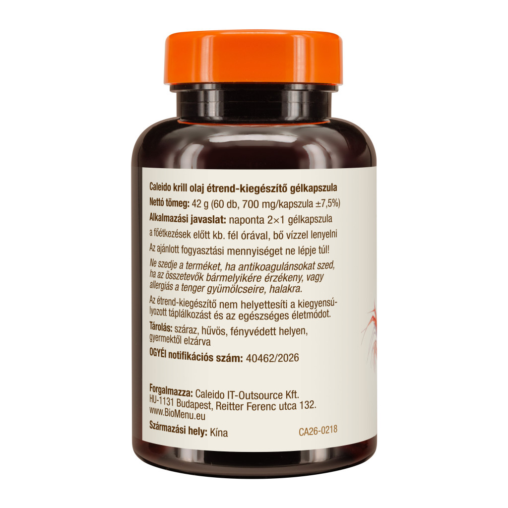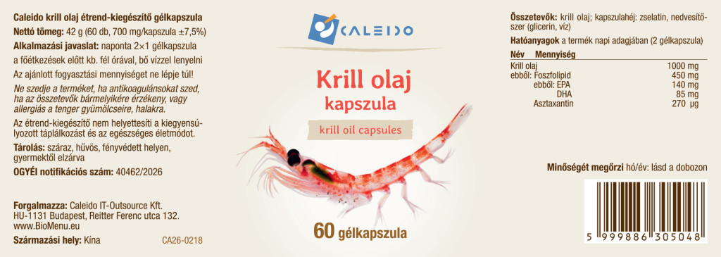 ulei de krill 1000 mg, din care fosfolipide 450 mg, din care EPA 140 mg, DHA 85 mg, astaxantină 270 µg