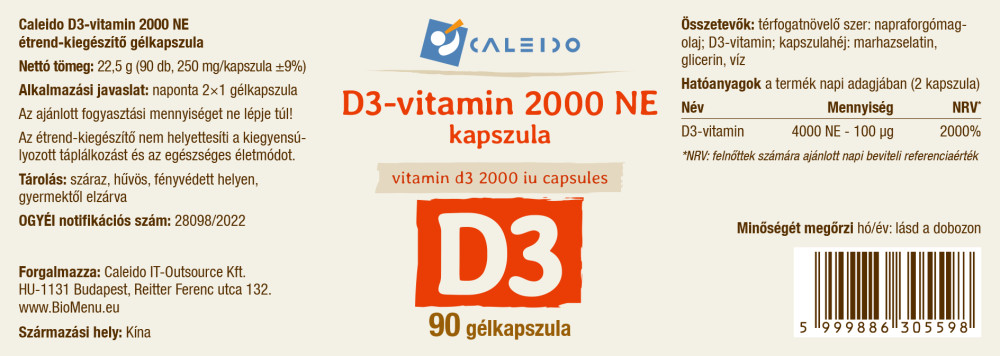 | Vitamina D3 | 4000 NE - 100 µg | 2000.00 |