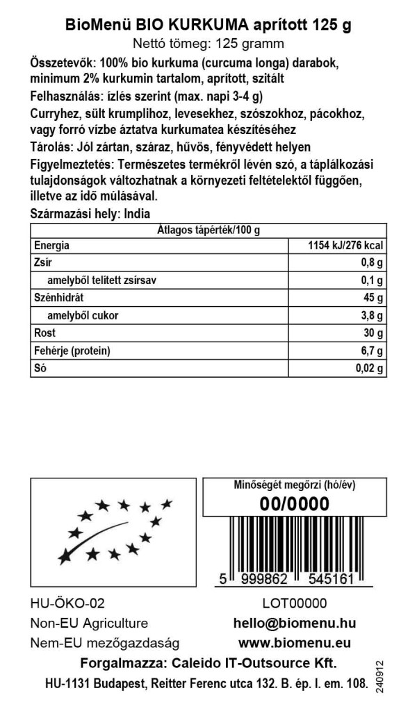 BioMenü BIO KURKUMA aprított 125 g KÖZEL A LEJÁRAT DÁTUMÁHOZ